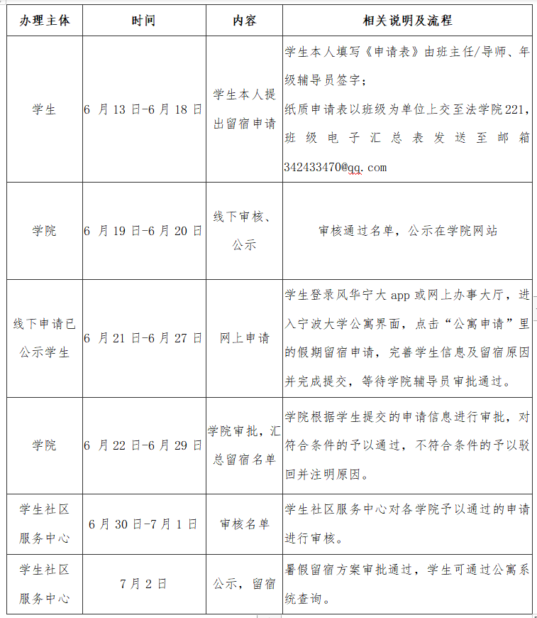 3.2022级阳明学院需暑假留宿的学生,请向学院申请留宿,学生个人无需线上申请,审核通过的学生暑假留宿地址为阳明分流调整后的目标寝室。