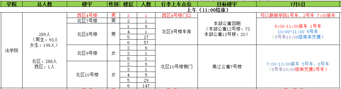3、请各楼宇严格按照对应时间搬运行李上车。