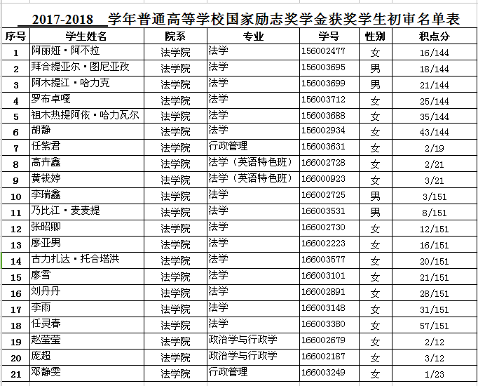 2017-2018学年日本av大全 国家励志奖学金经学生本人申报、奖学金评选委员会资格审核、讨论,结合奖学金评定办法,最终拟推荐2017-2018年度国家励志奖学金名单公示如下: