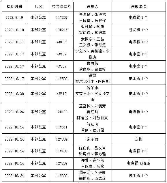 学生违纪处分办法(宁大政[2017]114号)》第二条、第四条相关规定,将予以院内通报批评。检查结果如下: