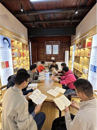 之后,党员们前往“真理园”展厅,结合展厅陈列的经典党政著作学习红廉文化,并在李学兰和金耀的带领下阅读了习近平同志《论教育》一书,就其中教师党员应如何在作风建设上以身作则的内容展开讨论。在思考与对话中,党员们对教师党员应尽的职责有了更新、更深的体会。