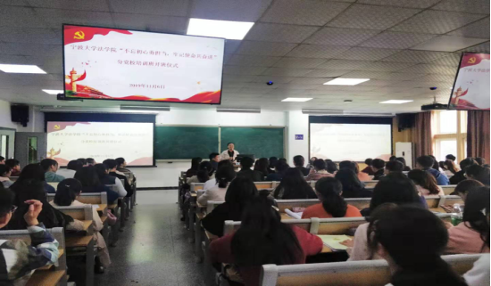 2019年下半年分党校开班仪式在教学楼举行,学院党委副书记孙芬娜、院团委书记党建辅导员邓美玲、兼职辅导员孔斌、“先锋小站”中心工作人员以及全体分党校学员共计160余人参加,邓美玲老师主持开班仪式。