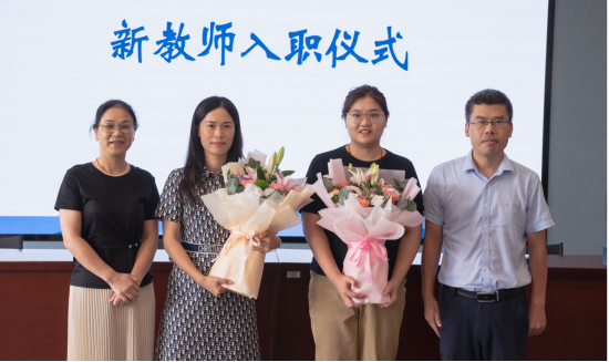 接下来举行了新教师入职仪式。新入职教师许恋天和杨锐进行了自我介绍,经济法与环境法研究所所长赵意奋、公共管理研究所所长徐忠国分别为新入职的教师送上鲜花。学院党委书记孙芬娜代表学院对入职的新教师表达了欢迎。
