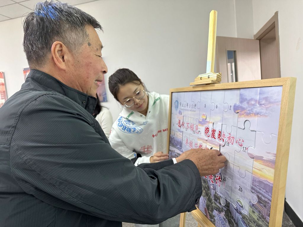 会后,离退休教职工参与了现场拼图互动,“退休不褪色,晚霞映初心,卓跃芳华永不老,幸福岁月总是诗”,这句话也寓意着学院对老教职工们的祝福。