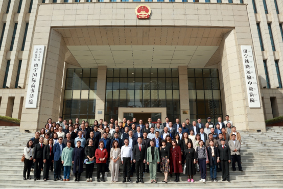 会后,与会专家共赴中国-东盟自由贸易区南宁国际商事法庭,调研涉东盟法律实践基地现场建设及中国-东盟法治实践情况,并参观考察了宁铁中院诉讼服务中心,重点了解了其组织架构及工作特色。