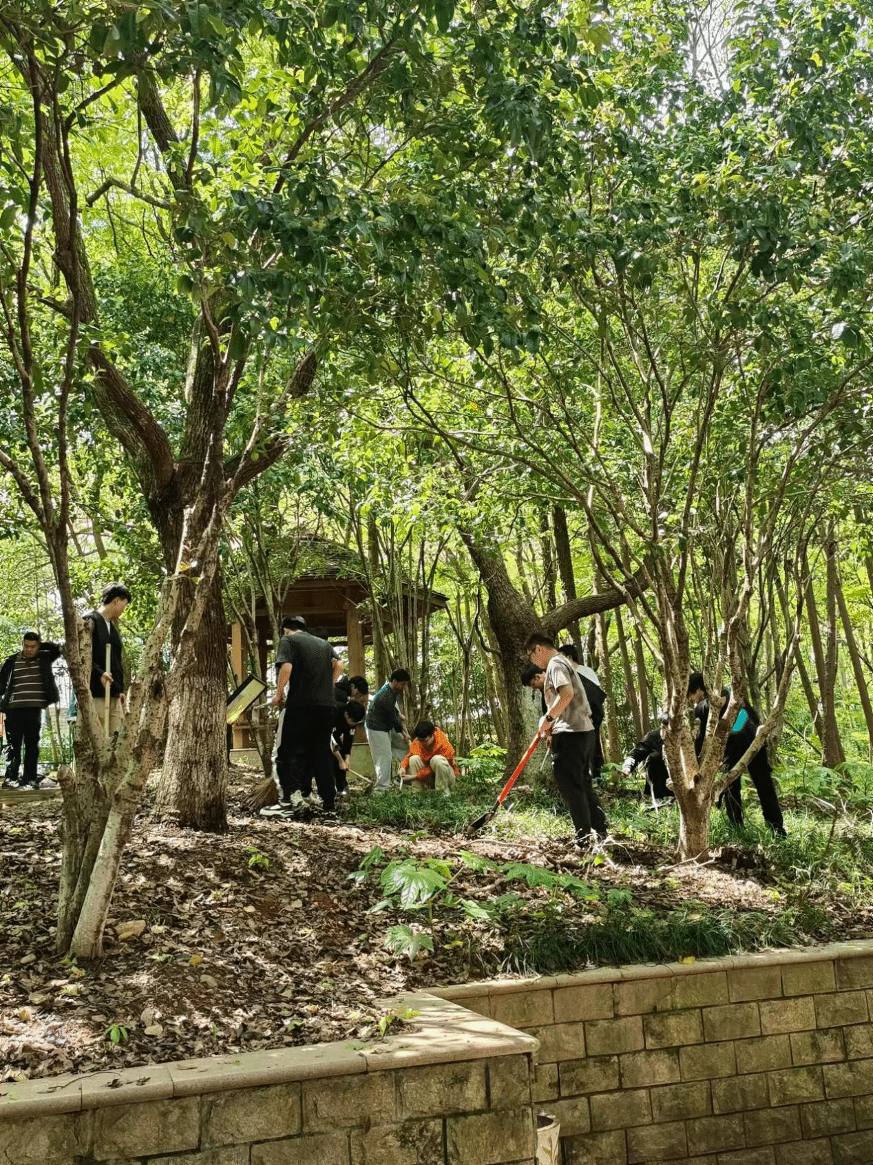 看着原本被枯枝败叶覆盖的地面变得整洁起来,同学们兴奋地表示再辛苦的劳动都是值得的。并且,他们从中收获了劳动的快乐,感受到人与自然的和谐关系。