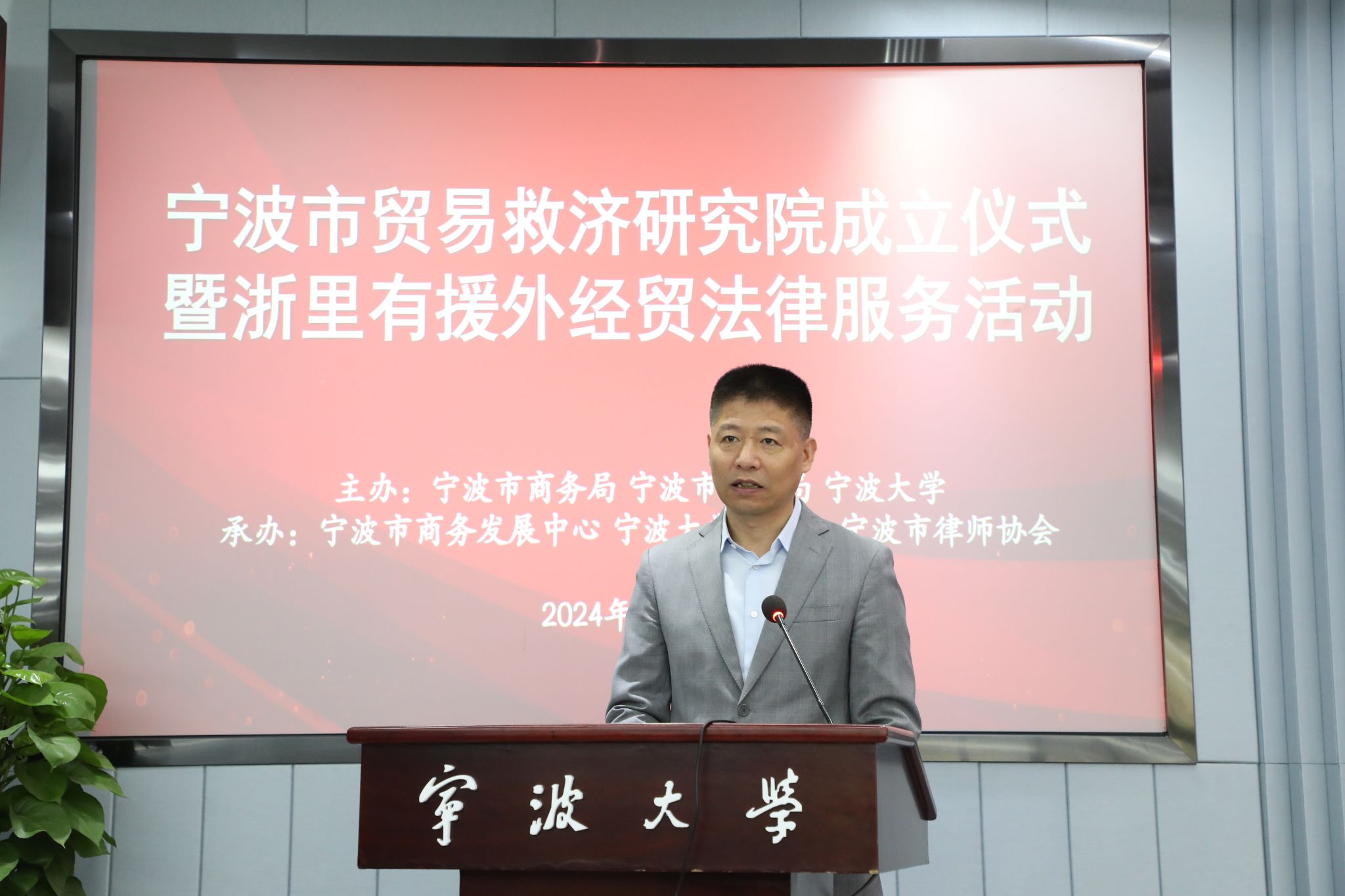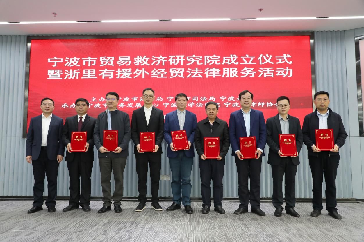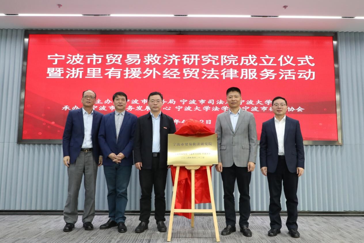 宁波市贸易救济研究院成立仪式现场领导揭牌