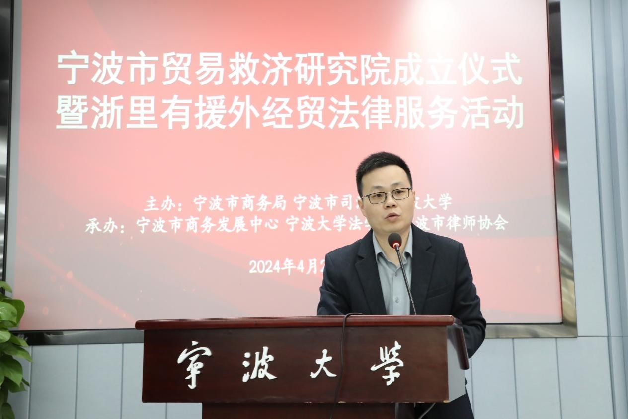 院长梁开银教授主持了宁波市贸易救济研究院揭牌仪式、宁波市贸易救济专家咨询委首批专家委员和宁波市贸易救济专家律师库首批成员聘书颁发仪式。