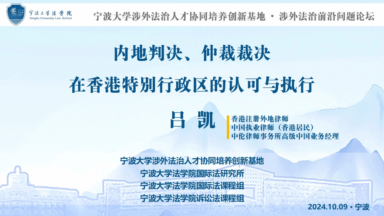 10月9日晚,由国际法课程组和诉讼法课程组合力推动的浙东法学讲坛第四十八讲暨涉外法治前沿系列(三)“内地判决、仲裁裁决在香港特别行政区的认可与执行”讲座在日本av大全