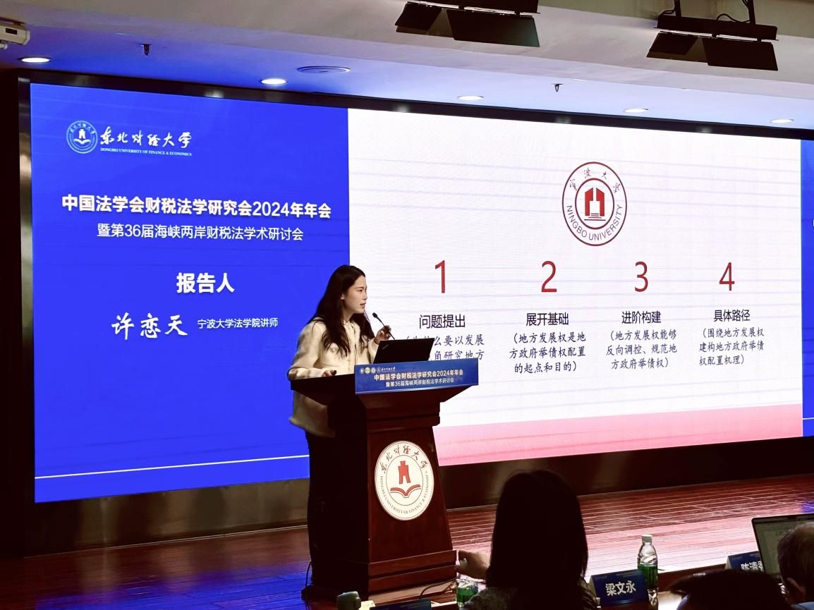 讲师许恋天参会,在青年财税法论坛作主题发言,提交论文《发展权视阈下地方政府举债权的配置原理及中国化展开》获得年会“中税咨询”青年优秀论文二等奖。