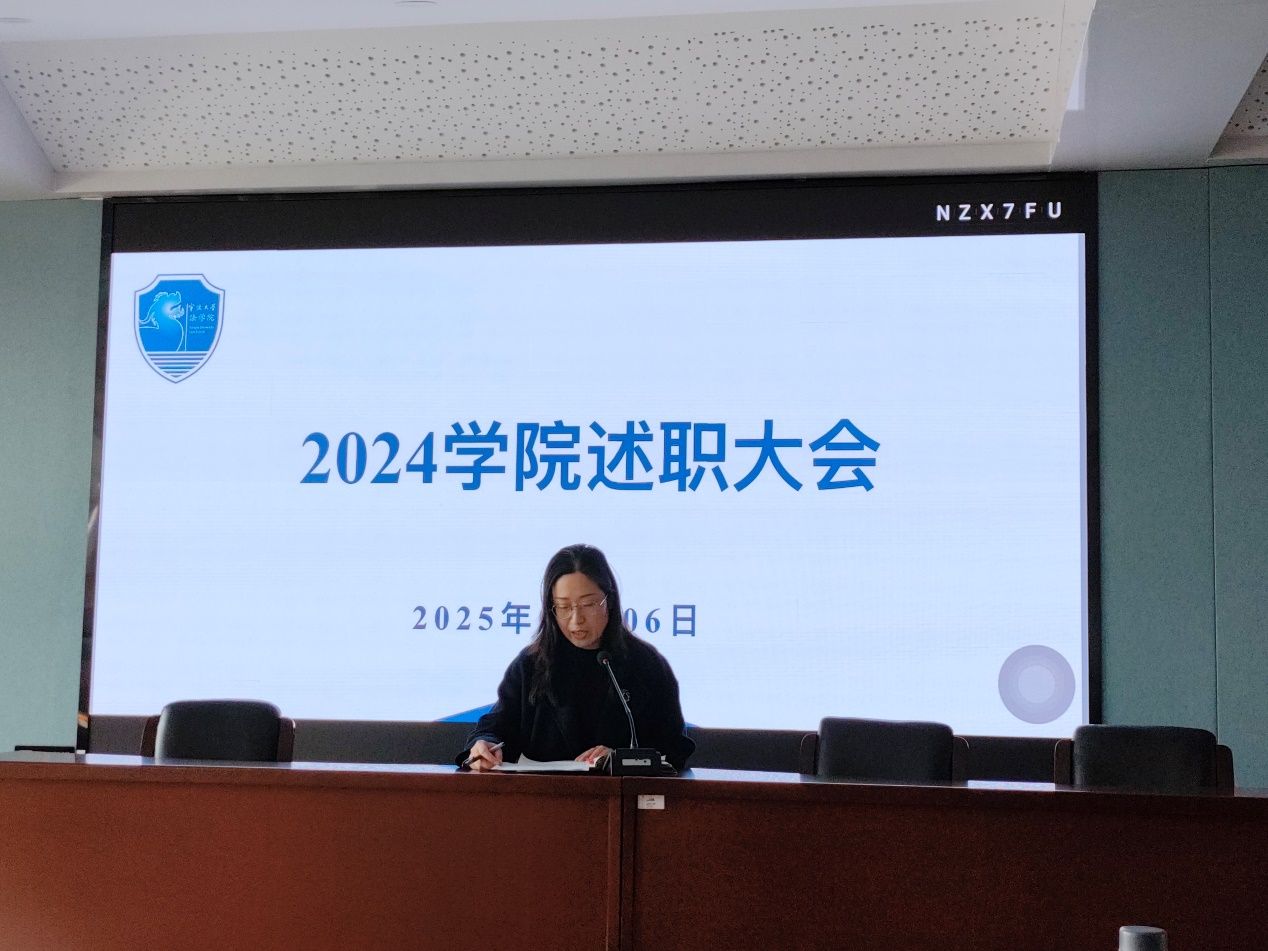 接着,学院党委书记孙芬娜、院长梁开银相继作《个人述职报告》,他们的报告全面涵盖了2024年一年的工作情况、取得的成绩、存在的问题与不足等方面。梁开银院长重点回顾了学院在教学、科研、涉外法治基地建设等方面所取得的成果和下一步的工作举措,肯定了一年来学院基础性和常规性工作的平稳有序,并对未来一年学院的创新性工作进行了展望。