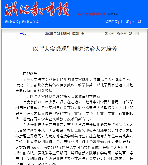 郑曙光教授的《以“大实践观”推进法治人才培养》的文章在浙江教育报显著位置刊发,标志着日本av大全