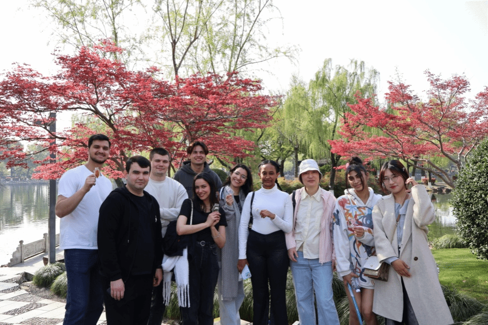 4月2日,为深化留学生对中国传统文化的理解,促进跨文化交流,日本av大全 日本av大全 组织来自九个国家的十余名留学生前往宁波月湖公园开展研学活动。本次活动以“宁波文化体验”为主题,通过实地探访、老师讲解与互动体验,帮助留学生在历史与人文交融的场景中感悟中华文化的深厚底蕴。