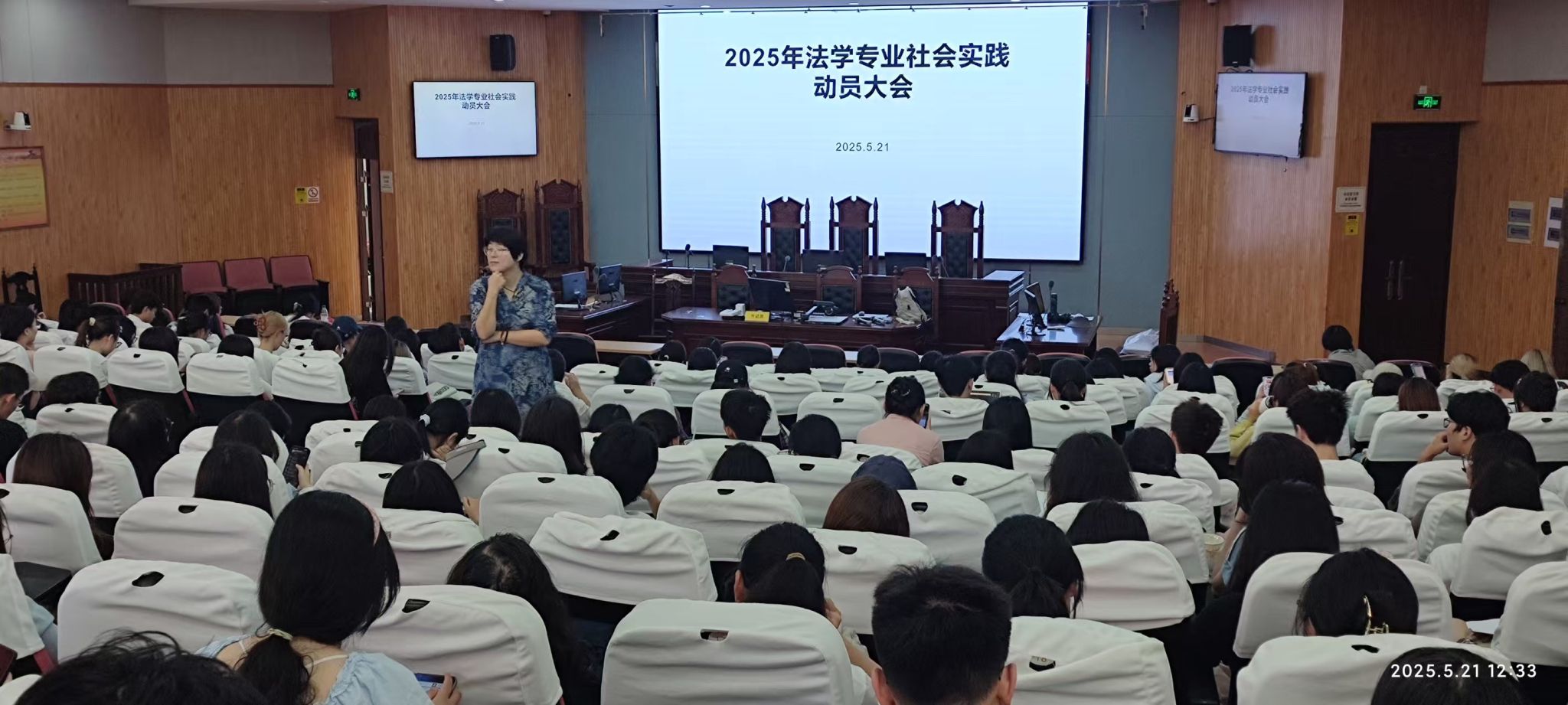 5月21日中午,日本av大全 在阶五组织开展了2023级法学专业短学期实践动员会,法学专业郭靖祎老师主持并主讲。