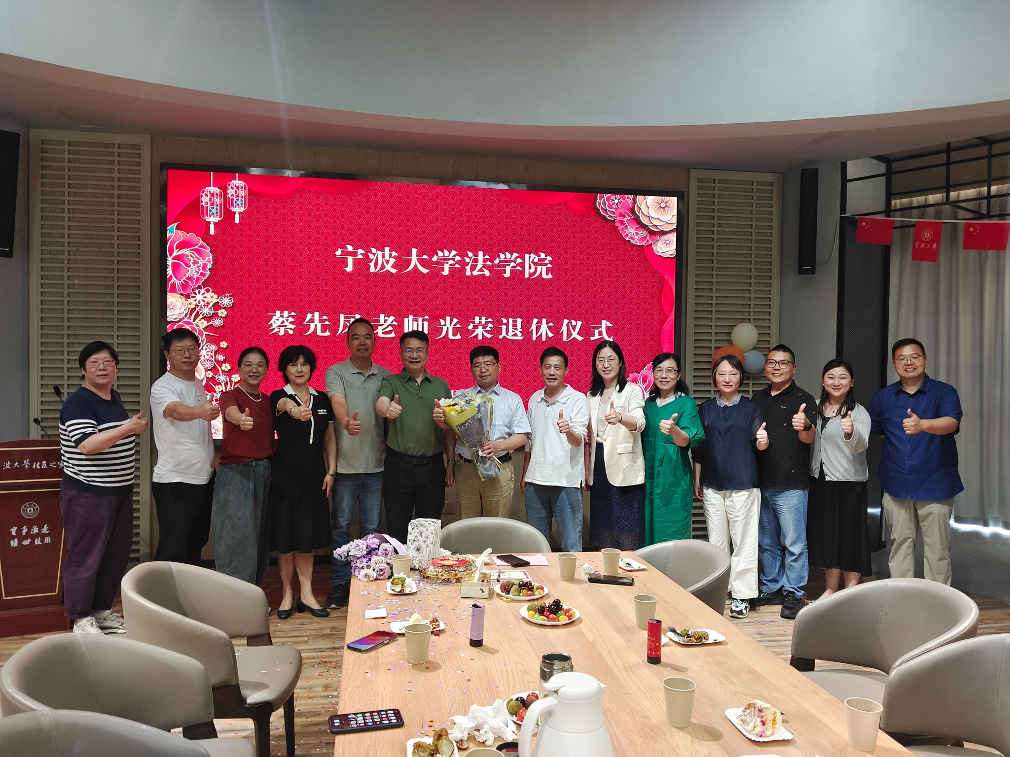 在校友之家为蔡先凤教授举行荣休仪式。学院党委书记孙芬娜、副院长何跃军、副院长王婉娟、工会主席王伟及学院教师代表参加仪式。仪式由党委书记孙芬娜主持。