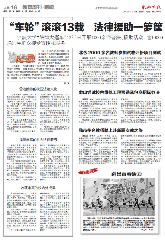 就开始不断探索丰富校园文化与服务社会相结合的道路,从最初的校内实践拓展到校内外相结合的“法律大篷车”新模式。