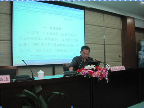 徐国栋教授以实际案例为引简述了研究缘起,介绍了保护无效婚姻中诚信当事人及其子女制度的罗马法起源,以及教会法关于保护无效婚姻中的诚信当事人的规定。随后徐教授向大家介绍了当代各国立法中保护无效和可撤销婚姻中的无辜当事人的3种模式:诚信方保护模式、无过失方保护模式及同时保护诚信方和无过失方的模式。最后,徐教授以充分的案例深入浅出的讲解了我国《婚姻法》对无效和可撤销婚姻中的诚信当事人的态度。