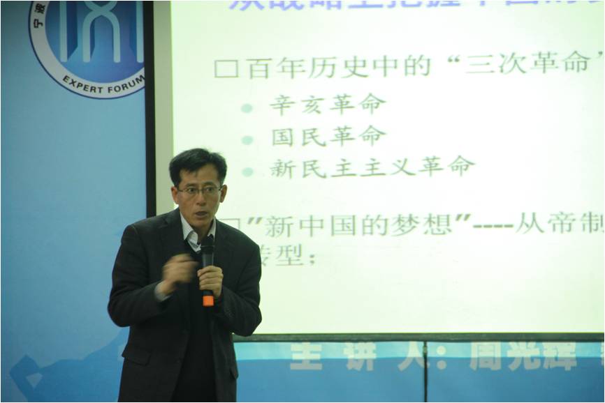 周光辉教授以“依法治国的政治学分析”为主题,从“十八大”期间国家领导人提出“中国梦”为引,以多项历史数据为依据,介绍了我国近现代史中的若干典型事件,道出“依法治国”这一治国方略的提出涉及到中国战略转型问题。随后周教授结合实例及数据,从政治学角度介绍了“依法治国”的起源及其对社会发展的重要性。