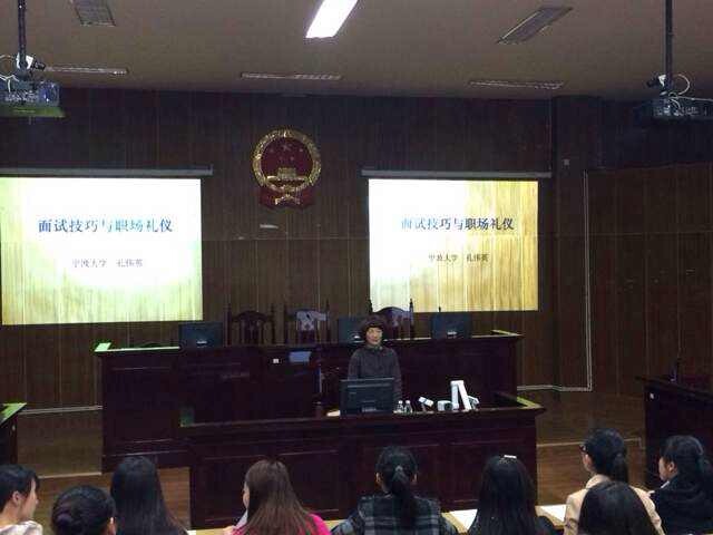 在阶五教室举办了一场“面试技巧与职场礼仪”的讲座。本次讲座邀请了马克思主义学院孔伟英老师担任主讲。学工办辅导员以及300余名2015届本科、硕士研究生毕业生参加了此次活动。