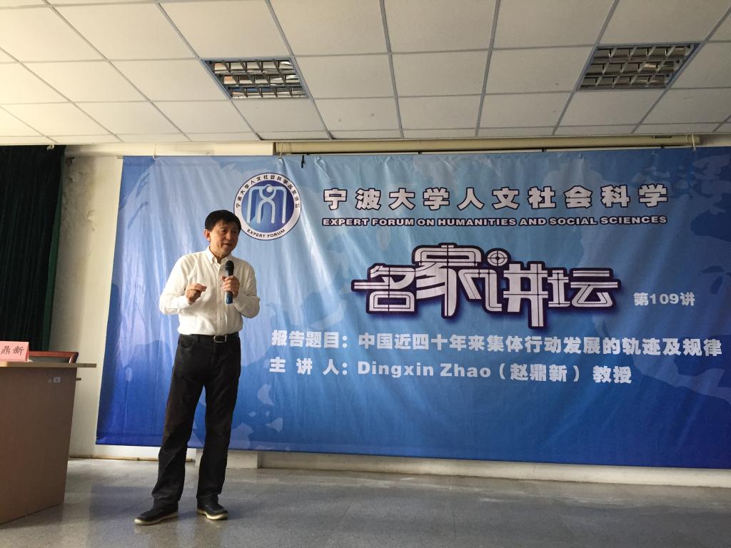 赵鼎新主要研究方向是历史社会学、社会运动、社会变迁、经济发展与民主转型,其研究成果在国内外学术界有着较大的影响。讲座中他以改革开放后集体行动发展的四个阶段为主线,站在国外的视角,从比较法的视野来谈自己对中国集体行动的体会。他认为1976年以前的集体行动是国家主导型的,而改革开放以后的集体行动发展逐渐与国家的政策与时代背景紧密结合。赵鼎新详细介绍了“1976—1989”、“1992—2002”、“2002—2012”、“2012——”四个阶段中集体行动的特点,大规模的集体行动在逐渐变少,政治化集体行动逐渐趋向经济利益的运动,新型的抗争方式在不断涌现。他通过丰富的举例以及幽默生动地讲述,为在场师生呈现了近四十年来我国集体行动的发展轨迹及规律。