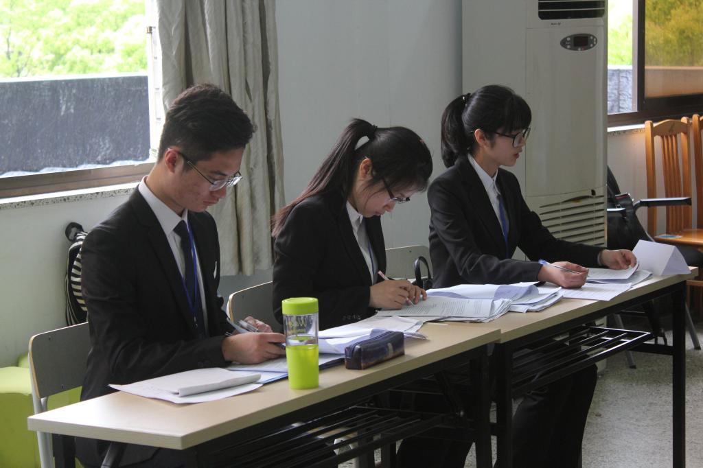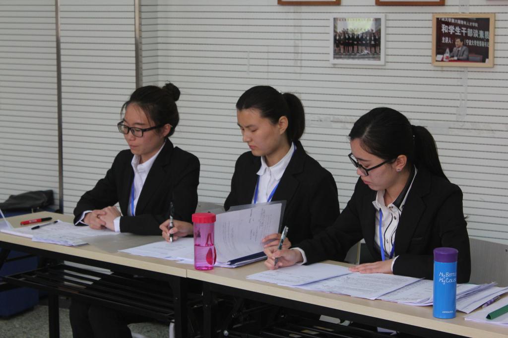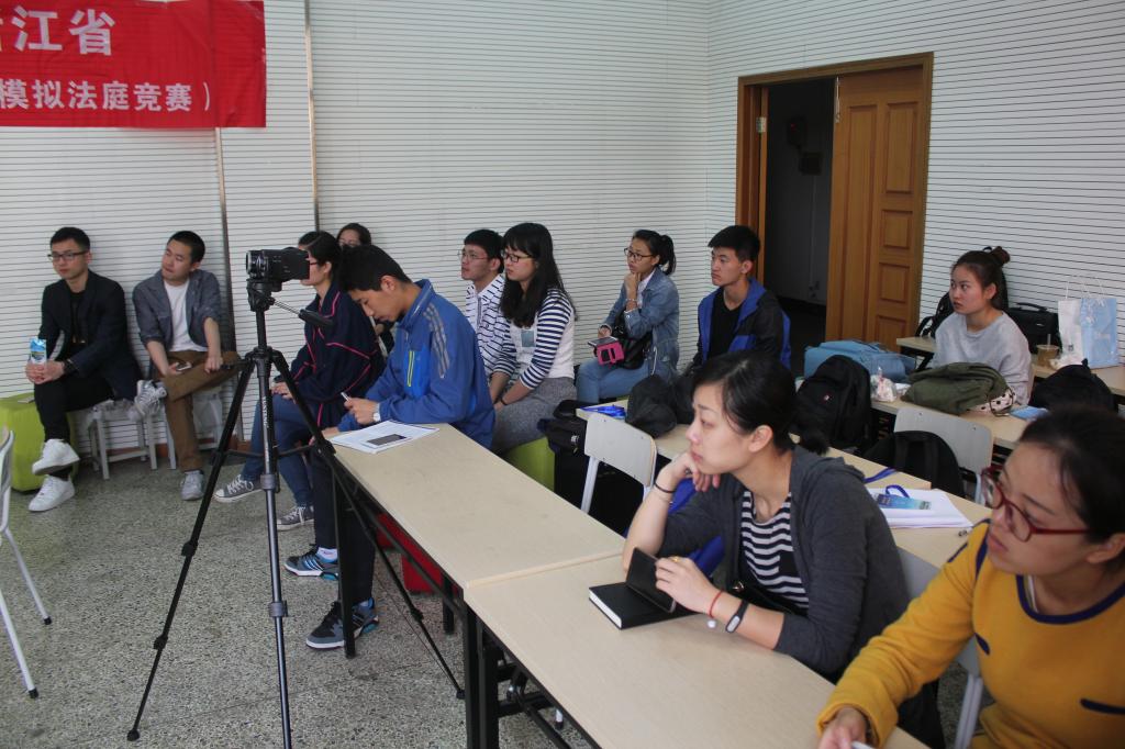 教师冯一文、宁波市检察院检察官陈鹿林、浙江合创律师事务所律师邓旭东担任评委,约20余名师生到场观摩了比赛。