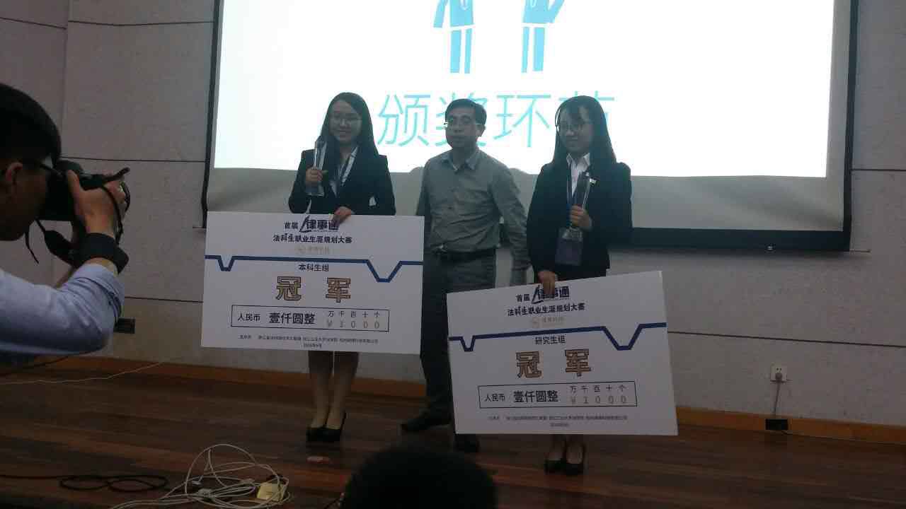 本次比赛除常规的奖项设置外,主办方还提供给获奖选手实务锻炼的机会。杨磊同学现场与浙江靖霖律师事务所成功签约;夏君洁同学与北京炜衡(杭州)律师事务所成功签约。两位同学均获得对方的实习实践机会。