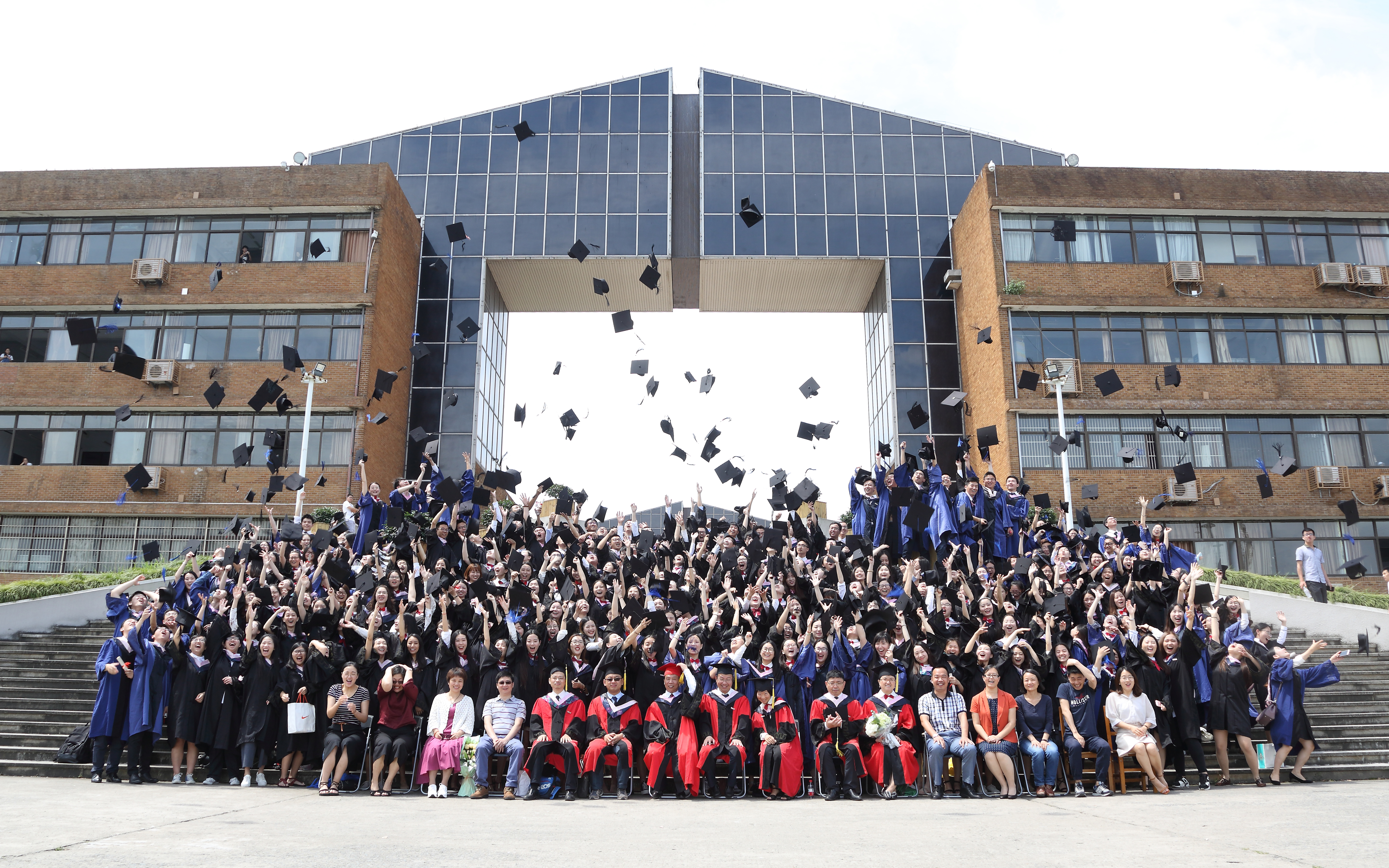 接着,在激动人心的音乐中,全体毕业生依次上台,全院党政领导一同为毕业生拨穗,并颁发毕业证书,与毕业生一一合影。最后,全体毕业生在南天门集体合影留念。