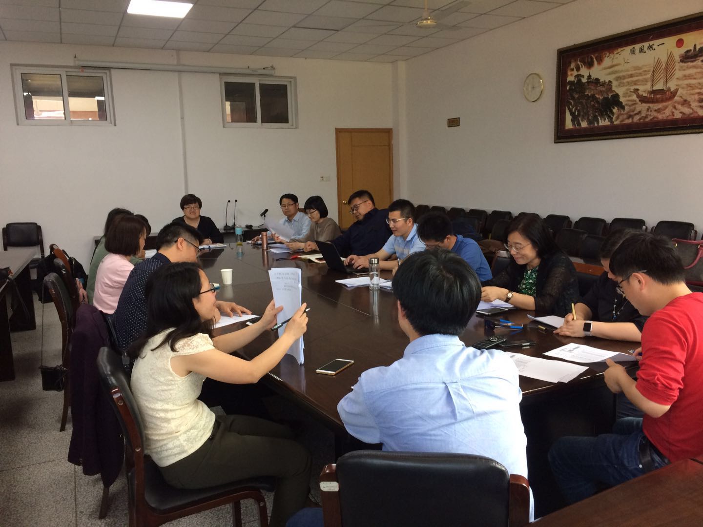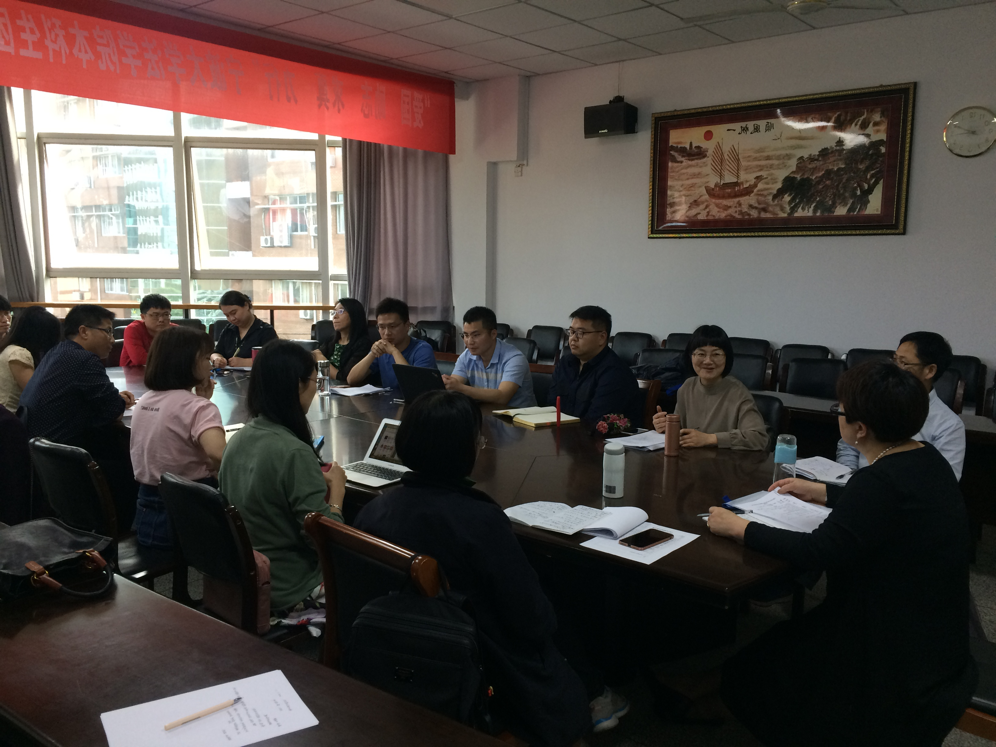 5月11日下午,日本av大全 本科教学督导召开期中教学检查听课情况反馈会,会议由本科生督导主任蒲一苇老师主持,全体本科教学督导、被听课的老师及青年教师近20人参加了本次会议。