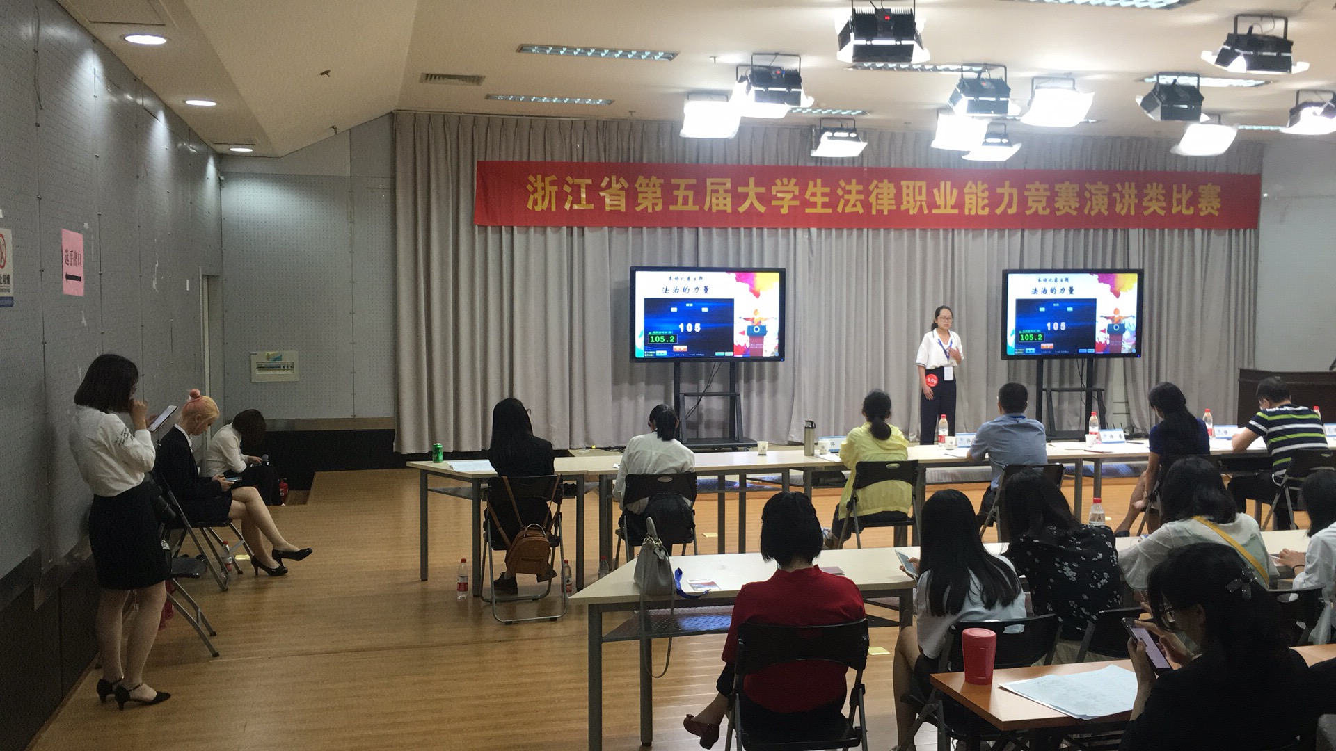 决赛分A、B两组同时进行,每位选手提前30分钟抽取题目,随后发表4分钟即兴演讲。围绕“法治浙江建设的路径”、“法治的力量”、“法律职业的信仰”等主题,我校11名选手灵活运用专业知识和生动案例侃侃而谈,充分展现出我校学生扎实的专业素养和良好的精神风貌。
