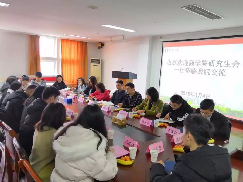 研会各项有益经验,增强研会的管理能力,创新研会的服务方式,积极地为所在学院的研究生提供发展的平台、便捷的服务和优质的资源。此次考察交流也将为日后两院的合作奠定基础,两院在本次交流中收获颇丰,取长补短,希望在今后的研会工作中加强与商院的联系,共同成长。