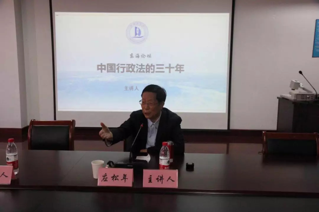讲座伊始,应松年教授开门见山地指出今年是我国《行政诉讼法》颁布三十周年,行政诉讼法在我国行政法治建设中发挥着巨大的作用。他首先娓娓道来我国行政法体系建立初期的背景,从新中国成立废除旧六法,到改革开放后恢复法制等。与此同时,应教授着重强调民事方面的法律对于推进行政法发展起到的举足轻重的作用,尤其是在《民事诉讼法(试行)》出台以后,给行政诉讼开了一个窗口,许多法院内部陆续成立了行政庭,到了88年,最高人民法院也成立了行政庭,并且趁着当时政治体制改革推行的东风,89年4月4日《行政诉讼法》迅速通过,为我国行政法往后三十年的发展奠定了坚实的基础。此后,我国陆续出台了《国家赔偿法》《行政复议条例》等救济方面的法律,应教授重点阐述赔偿法建立的核心问题是归责原则,并强调了加强精神赔偿和完善行政救济法的重要性。在证明责任方面,应松年教授特别指出举证责任问题的争论决定了诉讼的整个走向,行政诉讼法不同于其他三大诉讼法的最大区别是我国行政诉讼中的举证责任,属于被告承担举证责任制。随着中国进入市场主义经济,我国规制行政开始形成与发展,应教授提出在规制行政中,处罚、许可、强制和收费成为了行政机关最需要规制的四大事项,针对这四大事项如何制定行政法律规范的问题,应教授以《行政处罚法》的制定为例,详细介绍了处罚法制定过程中,应当明确的四个层面问题,分别为处罚种类、设定权、实施主体和程序。