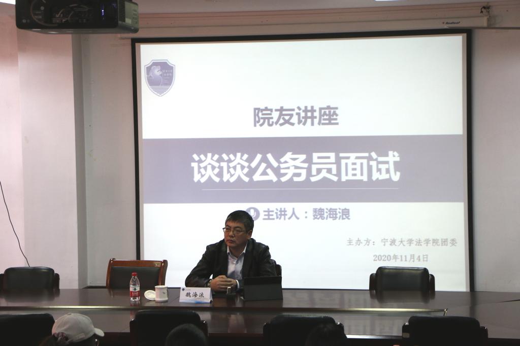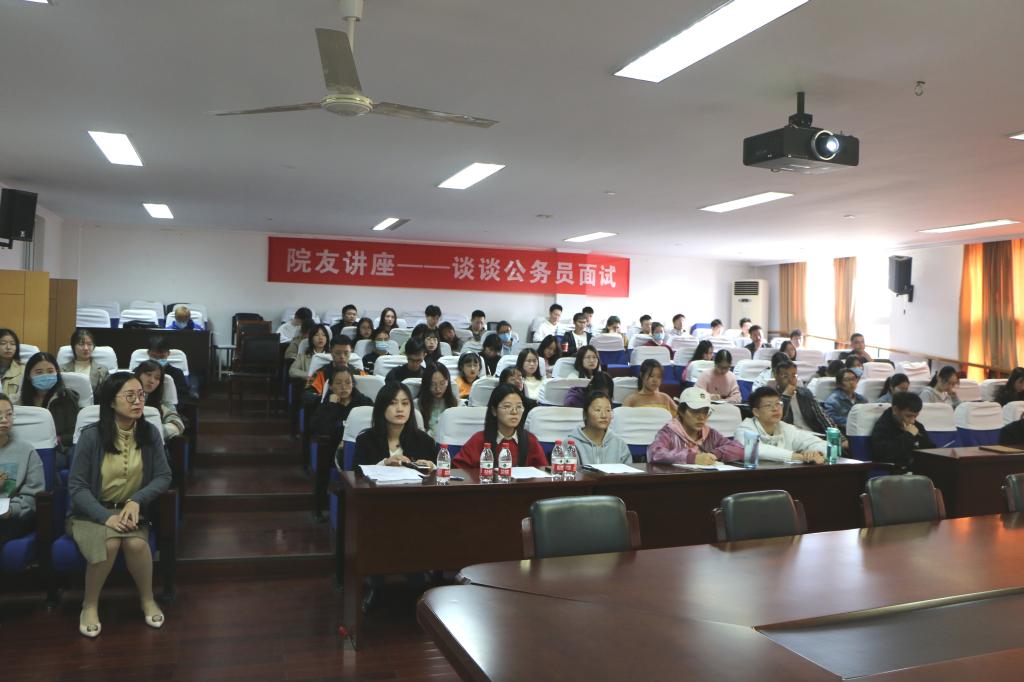 在讲座过程中,魏海浪以自身经历为例,分享他的职场经验,让同学们更好地了解公务员面试的面试流程与面试规范。同时,就专业知识学习、职业选择等方面进行了深入讲解,同时也教会了学生们日常的礼仪和人生哲理,也让同学们对自己今后的职业生涯方向有了更深刻的思考