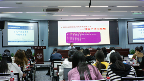 再次,丁教授阐述了习近平法治思想的基本框架:总目标是建设中国特色社会主义法治体系、建设社会主义法治国家的总目标;基本原则是坚持党对全面依法治国的领导、坚持以人民为中心、坚持中国特色社会主义法治道路、坚持党的领导、人民当家做主、依法治国的有机统一;主要任务是坚持依宪治国、以宪执政、坚持在法治轨道上推进国家治理体系和治理能力现代化、坚持依法治国、依法执政、依法行政共同推进,法治国家、法治政府、法治社会一体化建设、坚持全面推进科学立法、严格执法、公正司法、全民守法、坚持统筹推进国内法治和涉外法治;组织保障方面包括坚持建设德才兼备的高素质法治工作队伍、坚持抓住领导干部这个“关键少数”。随后,丁教授从地方立法角度诠释了习近平法治思想的基本内涵,一是坚持党的领导与;二是以人民为中心;三是科学立法;四是进行先行性创制型立法;五是提高立法效率;六是加强立法工作队伍建设。
