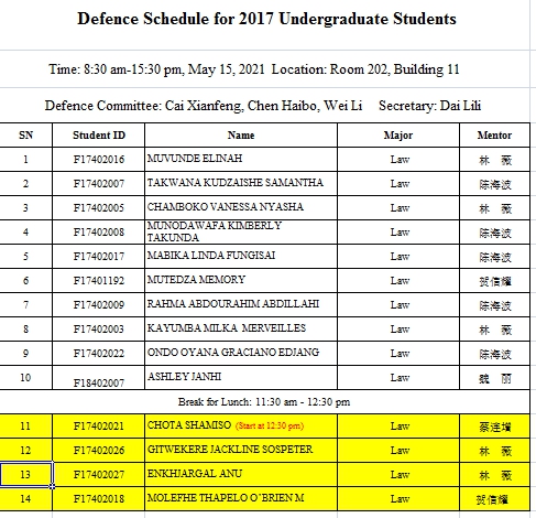 202会议室主持了2017级本科留学生Aaron Blessing Azibepu同学的毕业论文线上答辩。其论文题目是Thought on Retaining or Abolishing the Death Penalty in Nigeria。Aaron Blessing Azibepu能认真正确地回答老师们的提问,最终通过论文答辩。