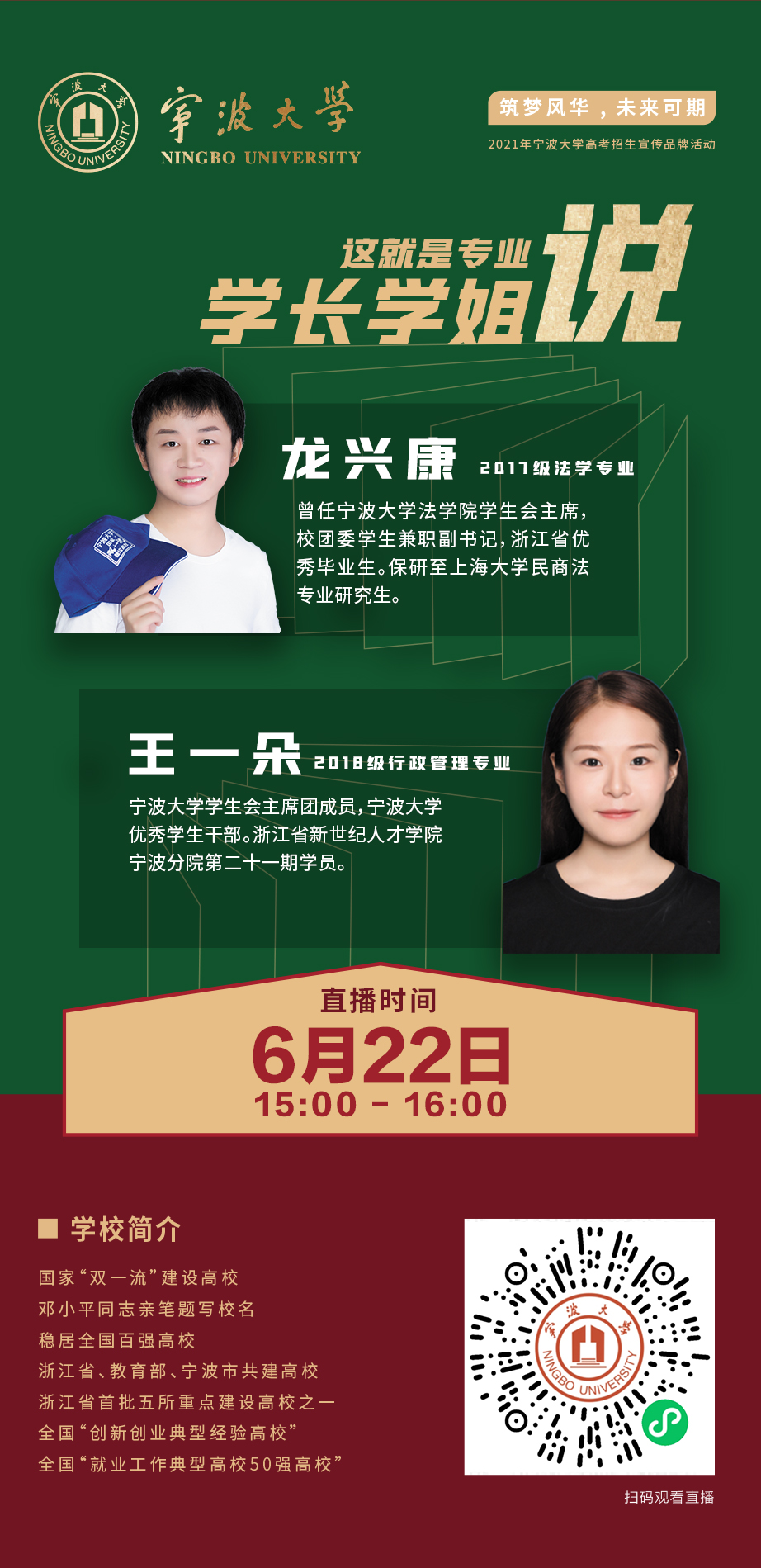 组织大量教师、学生、毕业生参与宣传工作,线下招生小组前往浦江、东阳、义乌的7所高中设置招生摊位进行现场宣传和咨询、答疑工作,发放招生宣传册5000余份;线上分别开展了院长、教授、学长学姐三场在线直播,零距离介绍学院、专业情况,同时,充分利用学院官微、专业咨询QQ群、招生热线等方式用心解答考生及家长问题,通过专业视频、学院文创、直播等增加了宣传覆盖面和吸引力,扩大了学院影响力,取得了良好的宣传效果。