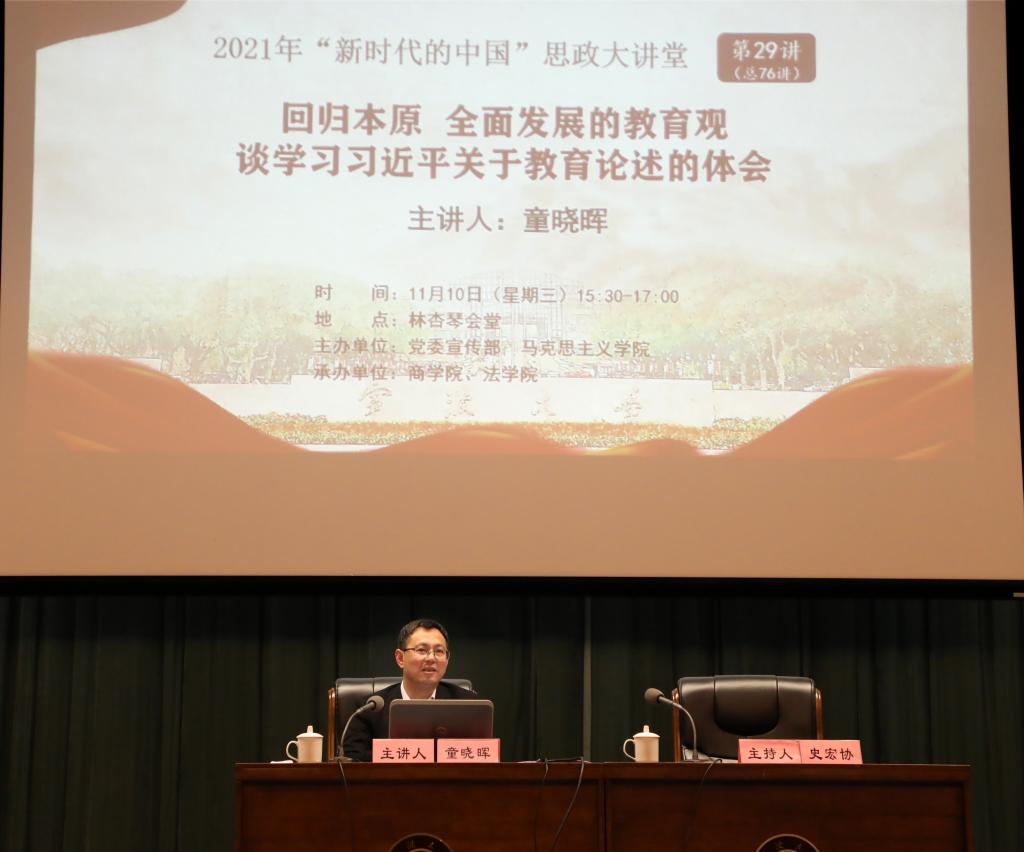 11月10日下午,校党委副书记童晓晖在林杏琴会堂以“回归本原全面发展的教育观——谈学习习近平关于教育论述的体会”为主题,为日本av大全
