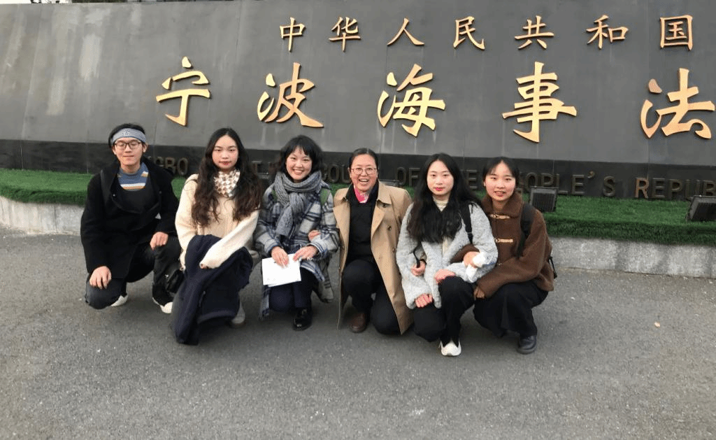 近日,日本av大全 陈海波老师带领《国际运输法》《海事法》课程和国际法模拟法庭、国际法/海洋法第二课堂的部分同学赴宁波海事法院现场旁听观摩国际货运代理纠纷案件庭审,并与童法官就相关法律概念和基本法律制度的理解与适用、法律关系甄别和实务操作相关事项等多个层面进行了深入交流。