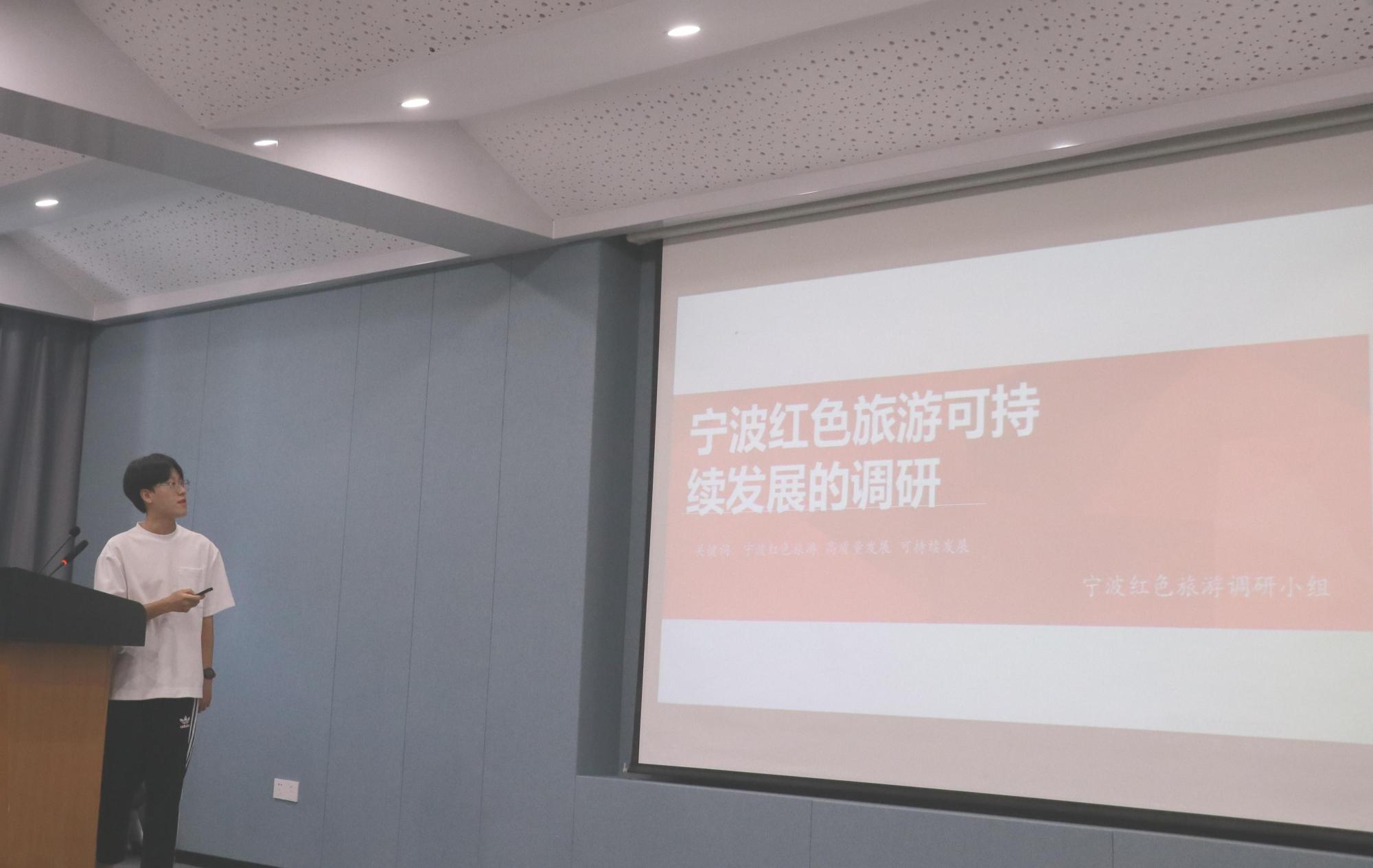 的21个实践团队逐一进行展示答辩。他们通过精美的PPT,从暑期社会实践的前期准备、具体实施过程及实践成果三个方面展开汇报。今年夏天,他们以“法律大篷车”“红色印记”“美丽浙江”等内容为主题开展社会实践活动。一张张图片、一篇篇调研报告、一个个感人的故事,都展示着学院学子颇丰的收获。