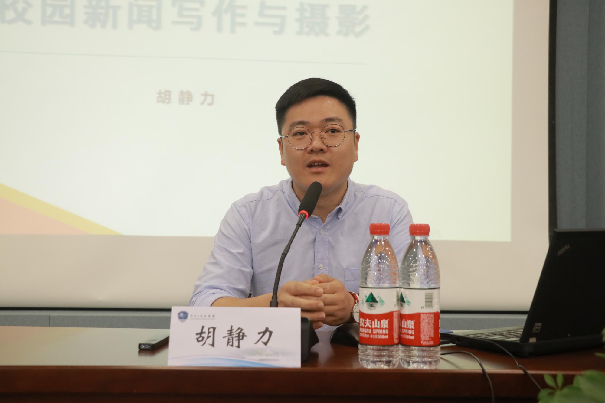 在培训过程中,胡老师对新闻的理解、要素、组成、种类、写作方法及需要注意的问题做出了进一步的阐释和说明,并对校园新闻工作者的素质提出了明确的要求。在摄影的构图、注意事项方面,胡老师也分享了宝贵的经验。同时,通过典型的新闻案例,生动形象地阐述了如何进行拍照。同时,她要求摄影人员对人物的抓拍要注意动作、神态和角度,要合理使用构图。
