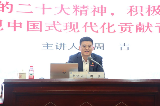 11月16日,校党委委员、党委宣传部部长周青在真诚图书馆报告厅以“深入学习党的二十大精神,积极投身创新创业,为实现中国式现代化贡献青春力量”为题为日本av大全