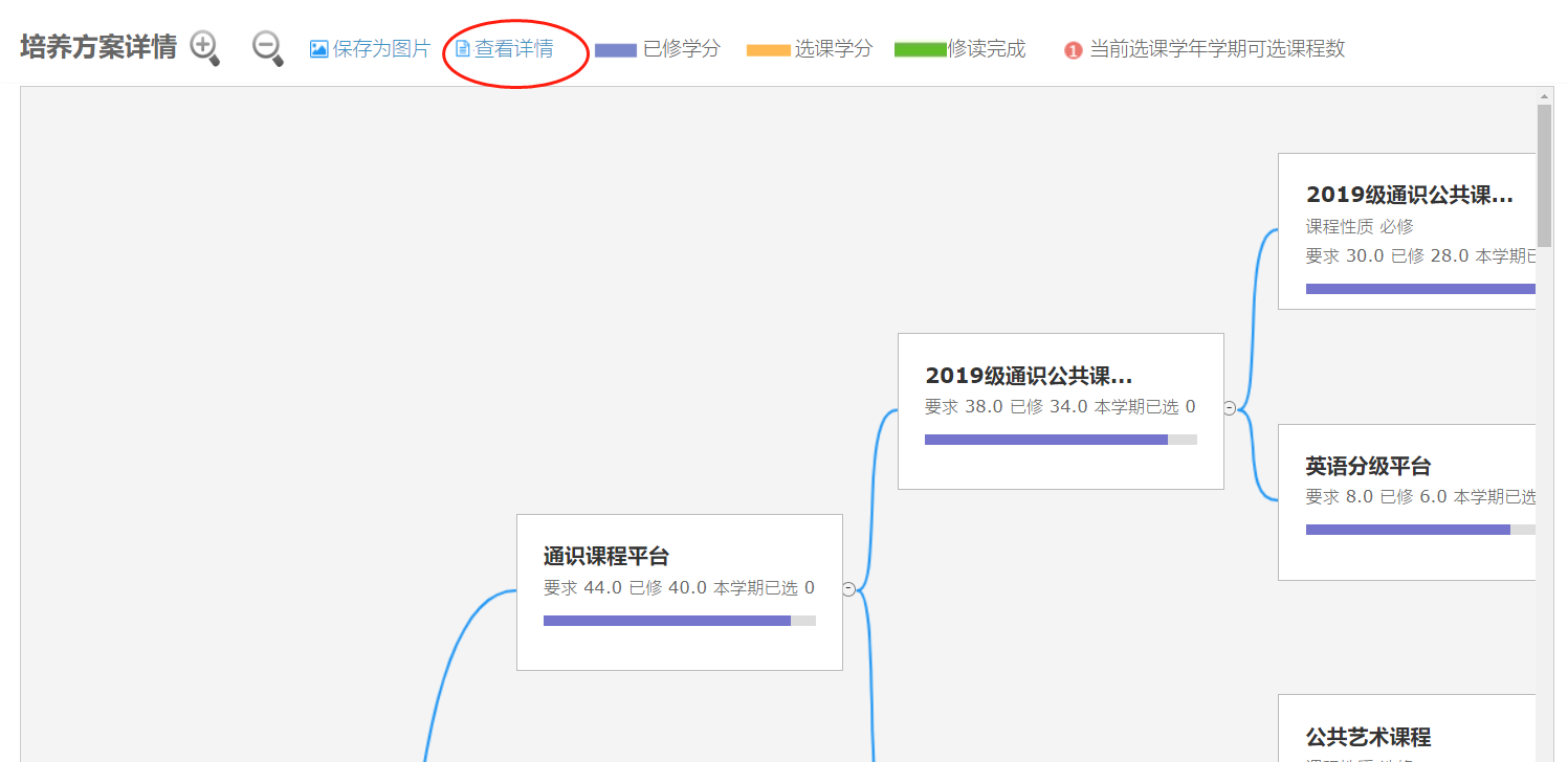 1.每个模块的学分是否完成;