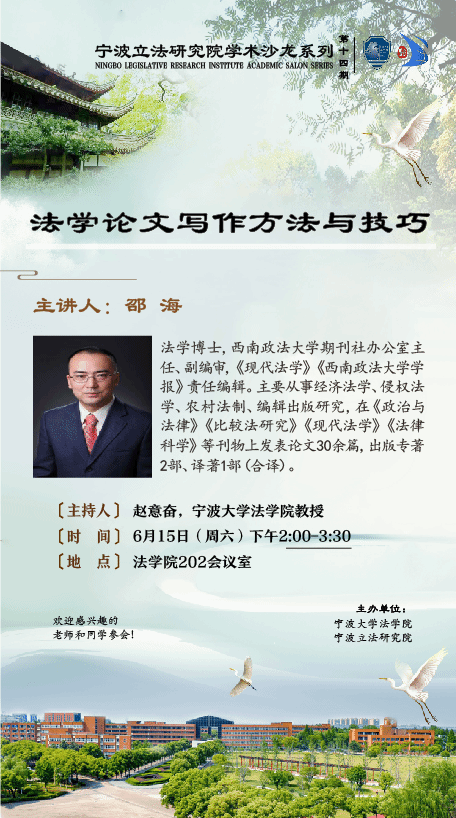 主讲人:邵海,法学博士,现为西南政法大学期刊社办公室主任、副编审,《现代法学》《西南政法大学学报》责任编辑。